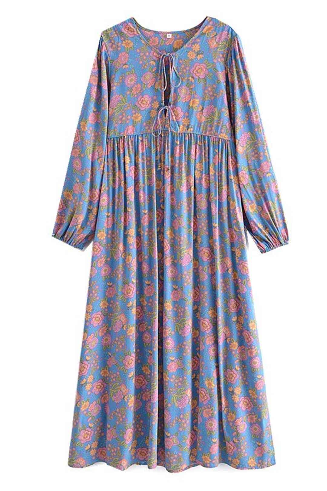 Gown Dress, Boho Maxi Dress, Loose Dress, Black Elliana Rose in Blue