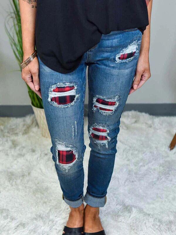 • Mid rise stretchy denim pants with distressed leopard patches.awesome and slim fit for ladies