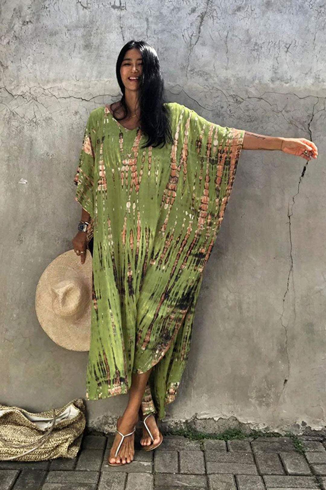 Beach Dress, Maxi Boho Dress, Kaftan Dress, Jose Tie Dye Print in Green