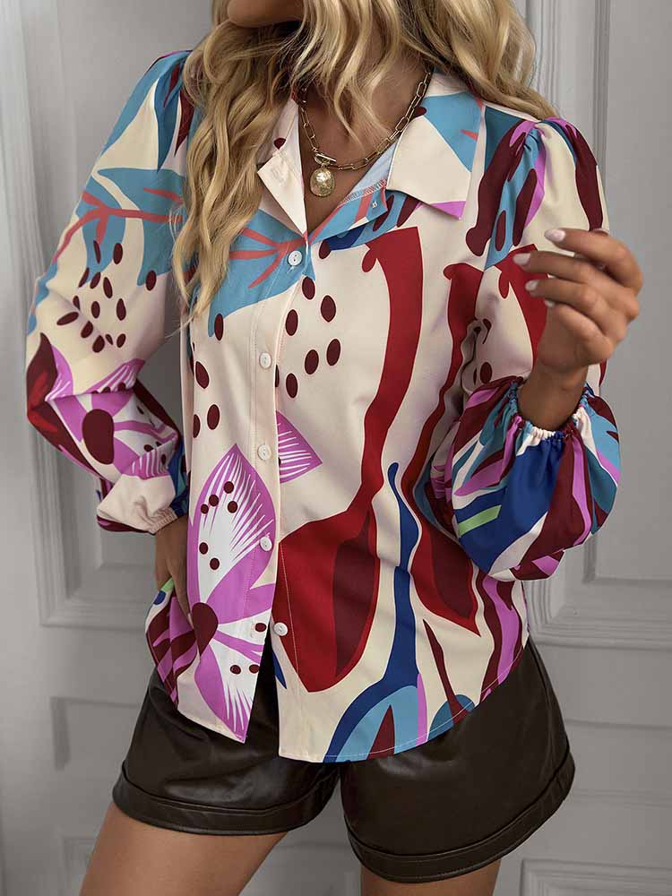 Bend Down Collor Multicolor Shacket Blouse Top