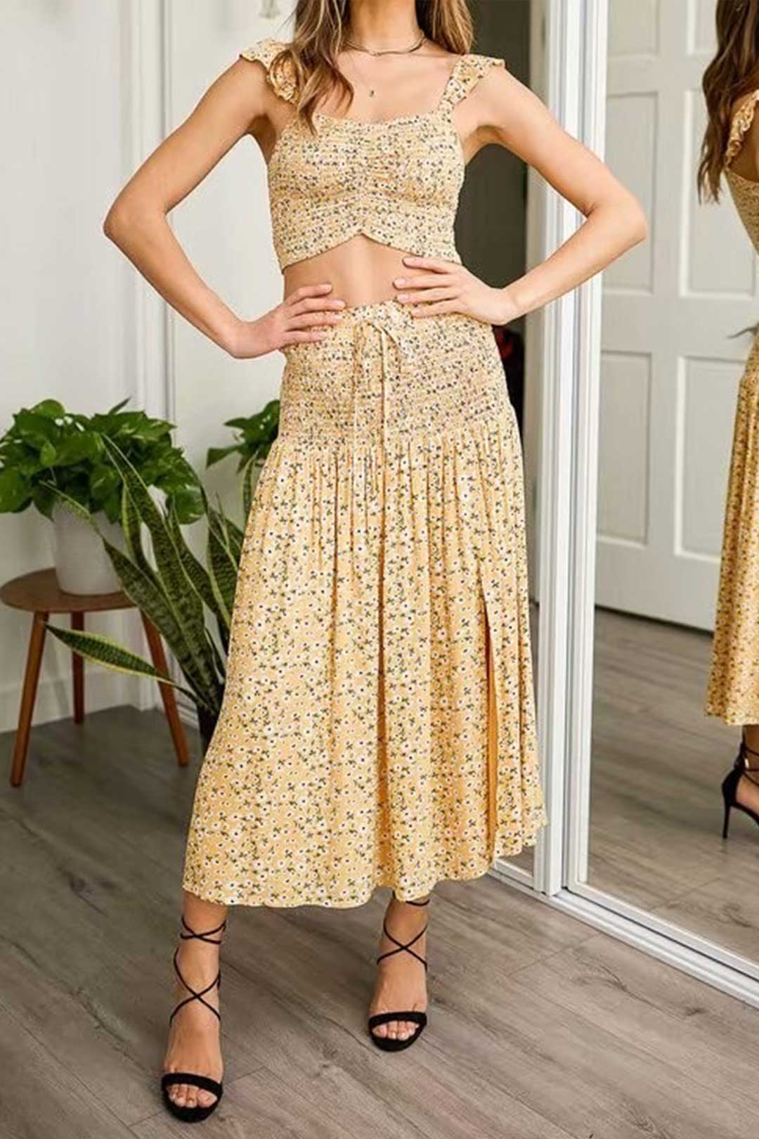 Boho Two Piece Set, Two Piece Pants Set, Wild Floral Daisy Saffron