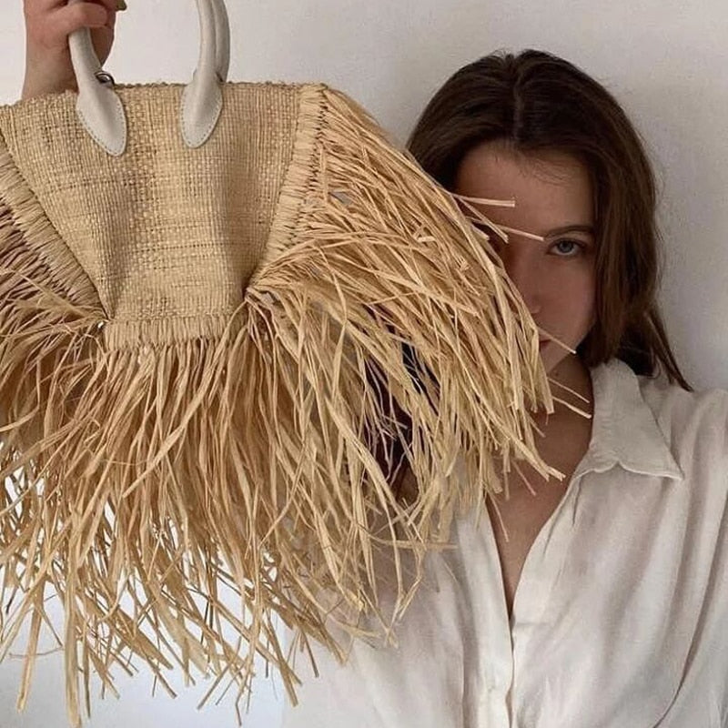 Boho Bag, Woven Raffia Bag, Rattan Bag, White Ivory Adele Tassel
