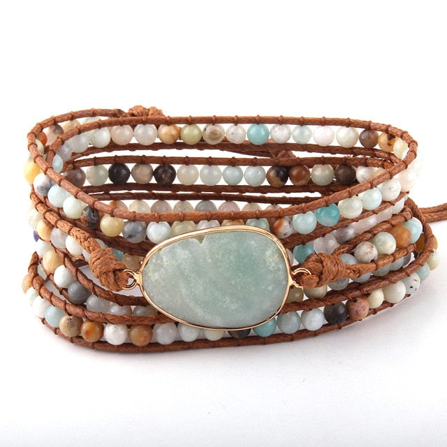 Boho Bracelet, RH 5 Layers Leather Wrap Bracelet, Natural Stones, Navy Lapis
