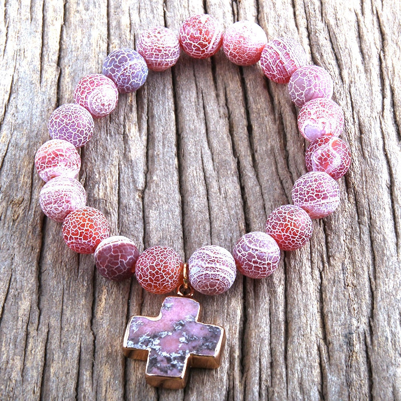 Boho Bracelet, RH Natural Stones Pink Cross