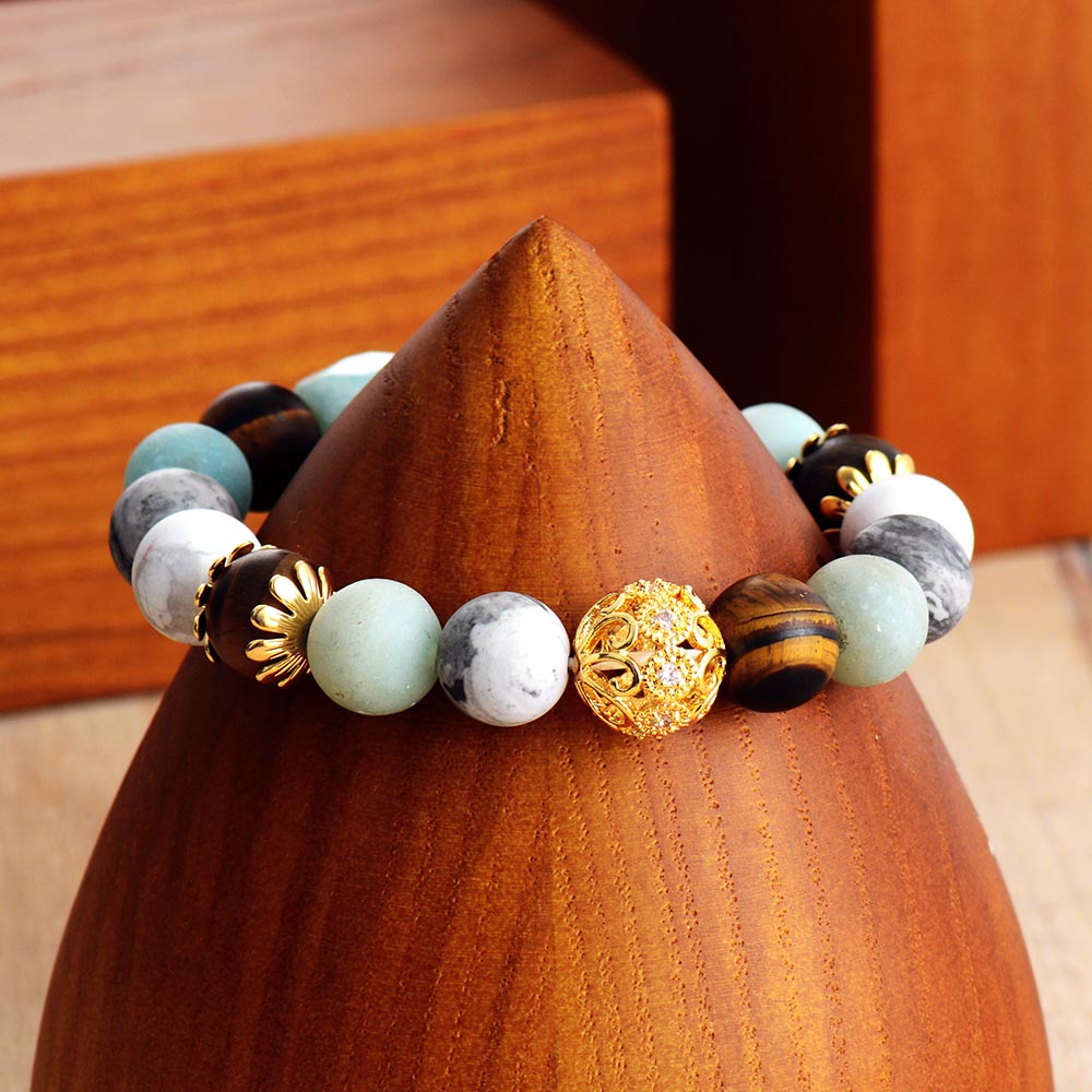 Boho Bracelet, Stretchy Bracelet, Blue Amazonite, Tiger Eye and Howlite