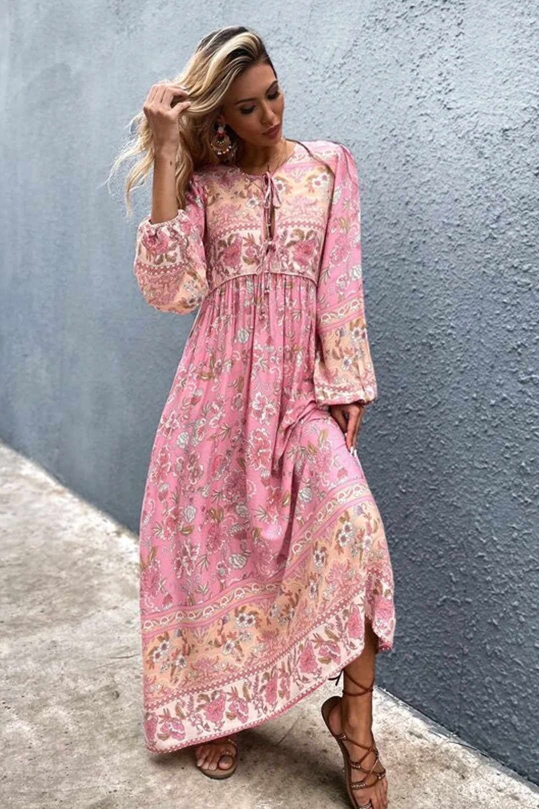 Gown Dress, Boho Maxi Dress, Loose Dress, Carina Rose in Pink