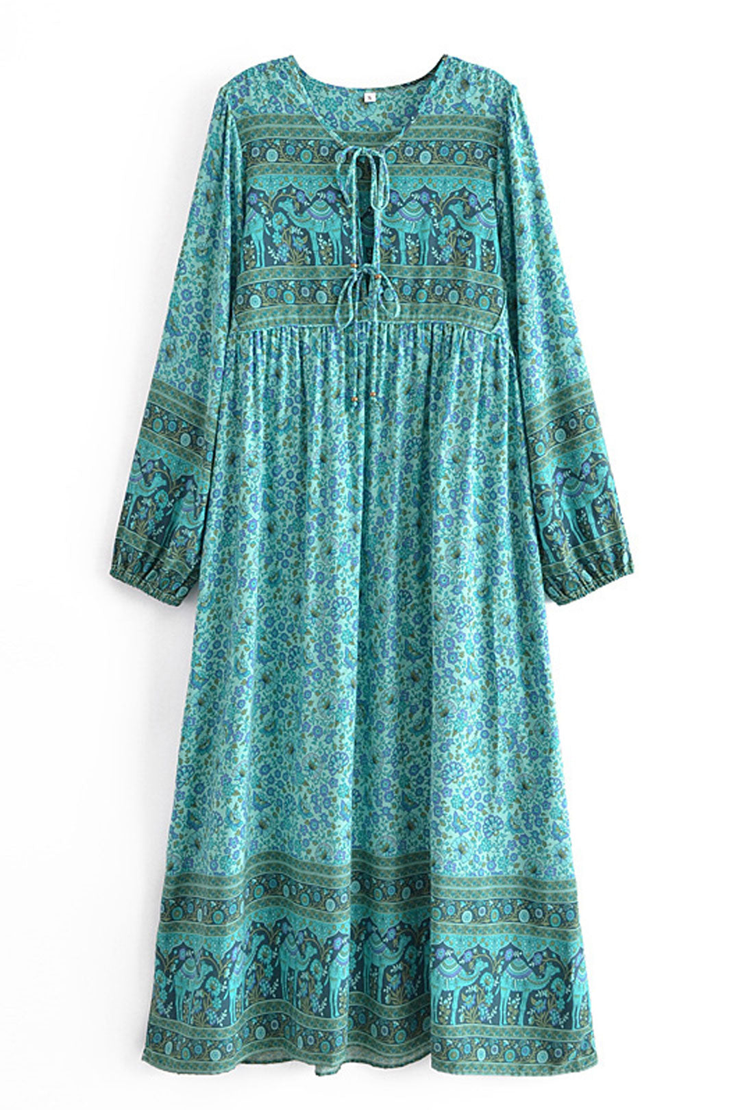 Gown Dress, Boho Maxi Dress, Loose Dress, Green Camel
