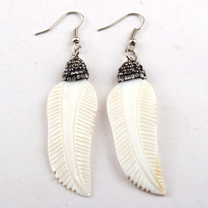 Boho Earrings, RH Dangle Earrings, White Shell Leaf Clay