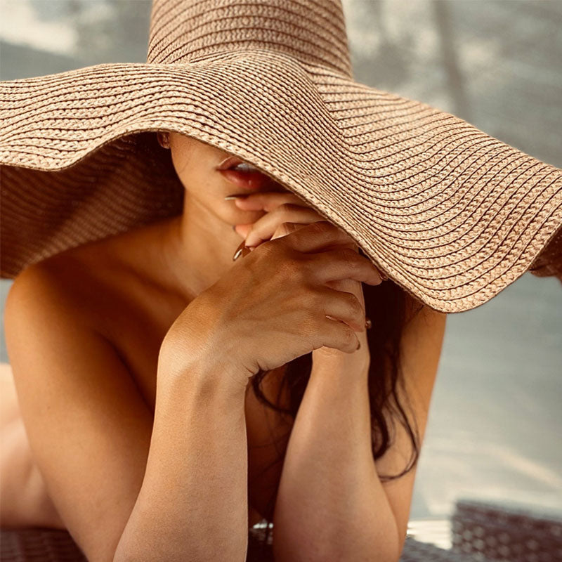 Boho Hat, Beach Hat, Extra Wide Brim Paper Hat, Floria in Pink, Orange, Green and 35 colors  (Soft, 25 cm)