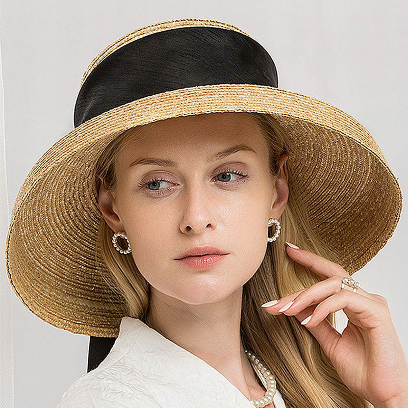 Boho Hat, Beach Hat, Straw Sun Hat, Vinatge Lady Black Ribbon