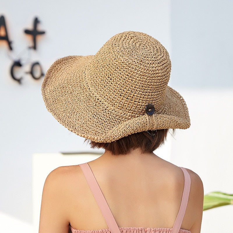 Boho Hat, Beach Sun Hat, Grass Flod Hat in White and Caramel