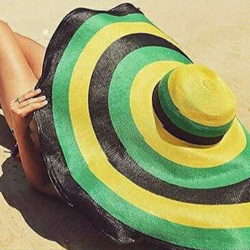 Boho Hat, Sun Hat, Beach Hat, Extra Large Wide Brim, Straw Hat, Jamaika Green Yellow (Soft, 25 cm)