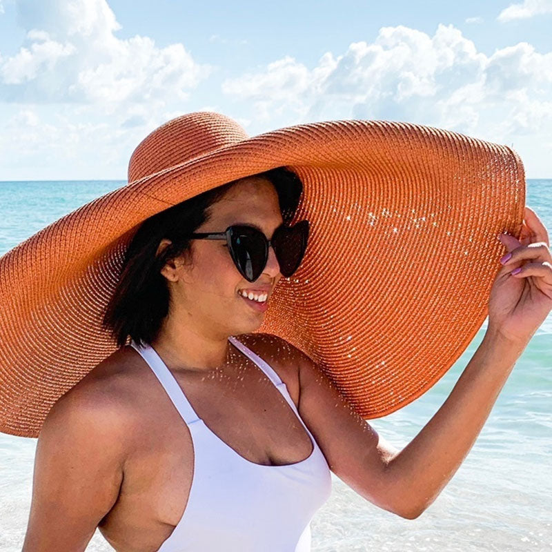 Boho Hat, Sun Hat, Beach Hat, Extra Large Wide Brim, Straw Hat, Orange, Pink, Black, White, and more 18 colors (Soft, 25 cm)