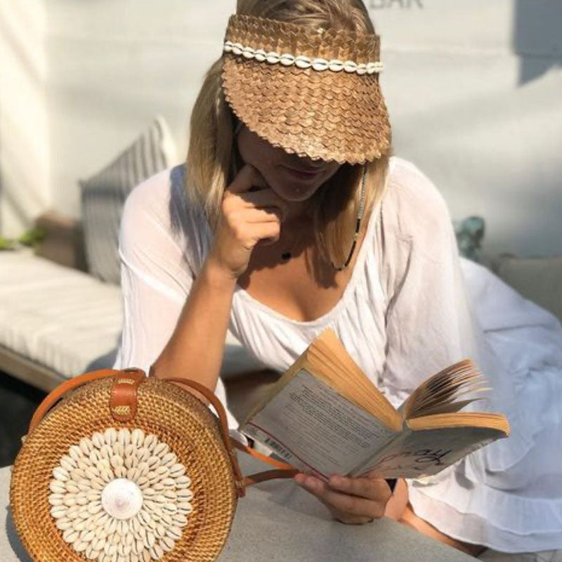 Boho Hat, Sun Hat, Beach Hat, Shade Visor Beige Straw Cap, Sofia with Shell