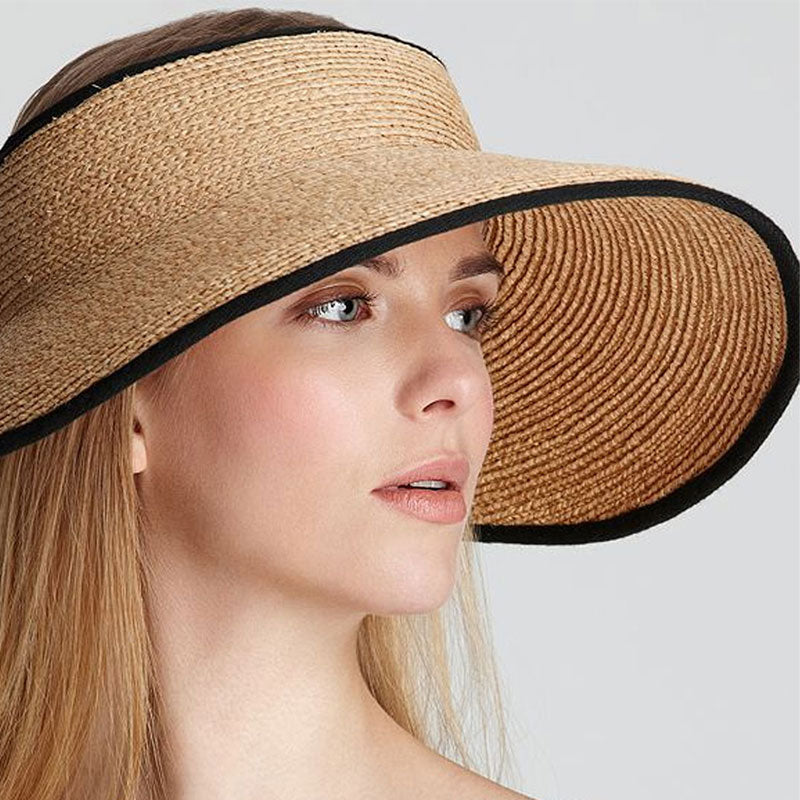 Boho Hat, Sun Hat, Beach Hat, Wide Brim Straw Hat 10 cm, Shade Visor Black Ribbon