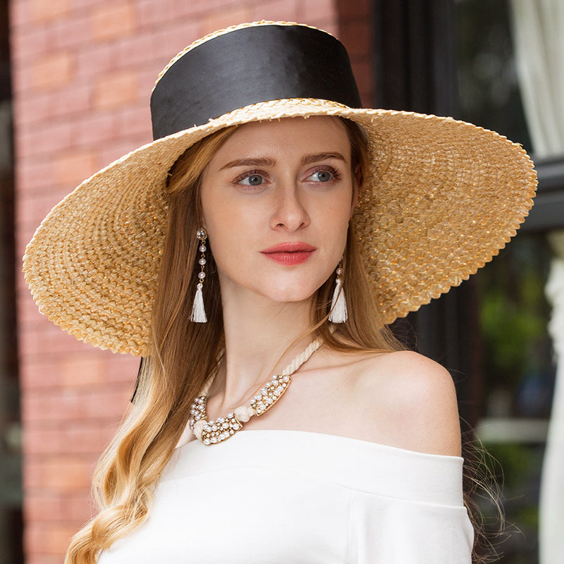 Boho Hat, Sun Hat, Beach Hat, Wide Brim Straw Hat, Big Black Ribbon