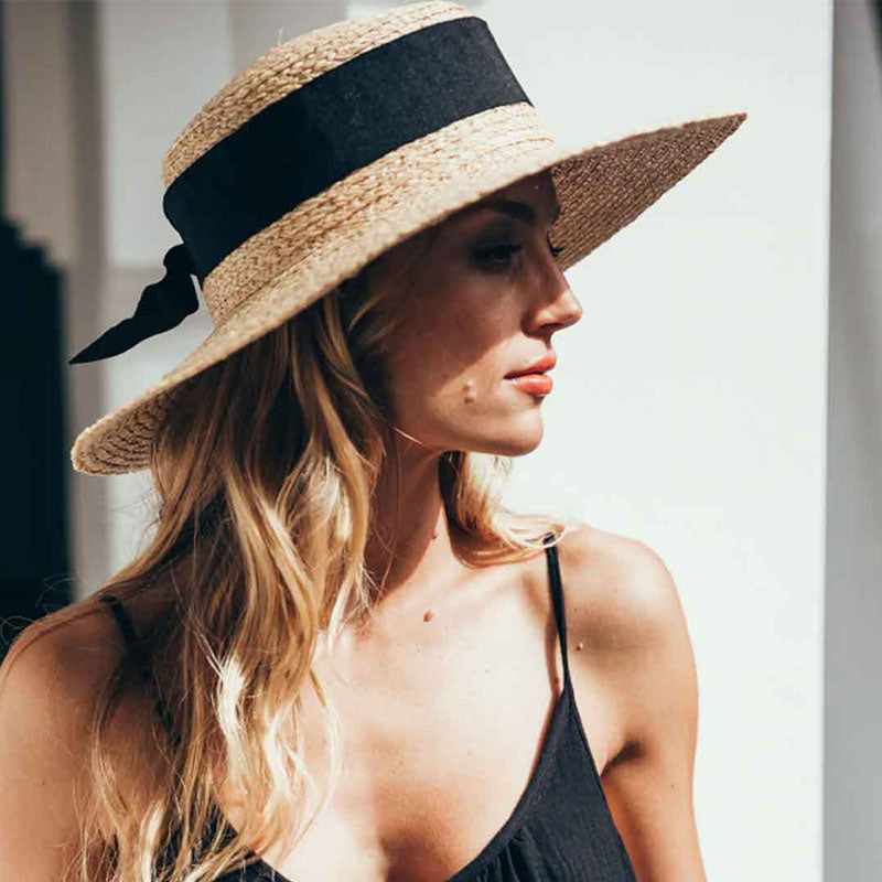 Boho Hat, Sun Hat, Beach Hat, Wide Brim Straw, Leah Black Ribbon