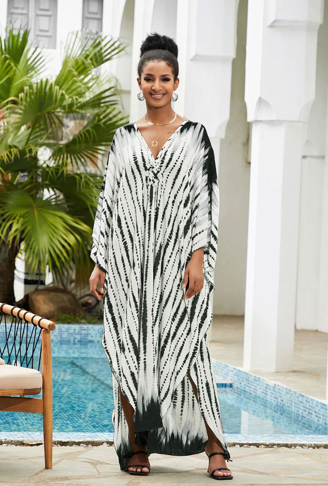 Boho Maxi Dress - Beach Dress, Kaftan Dress Vintage Embroidered in Danica Tie Dye Black