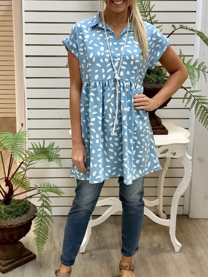 Button Up Short Sleeve Casual Mini Dress