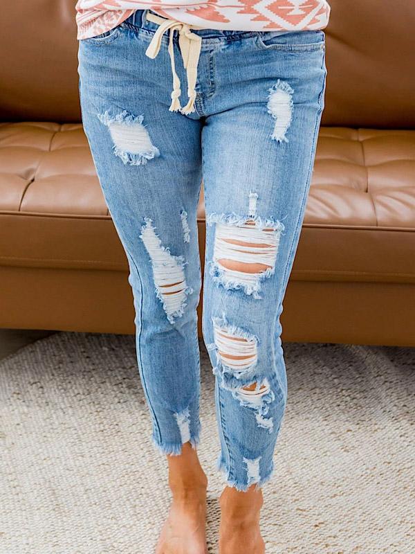 Casual Ripped Drawstring Jean Pants