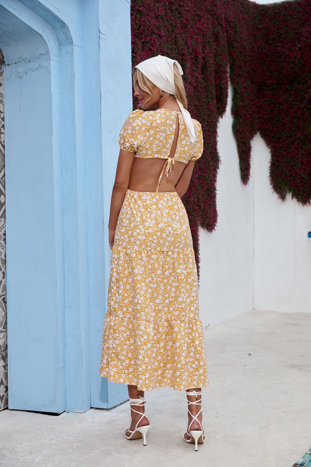 Open Back Casual Short Sleeve Round Neck Midi Dress