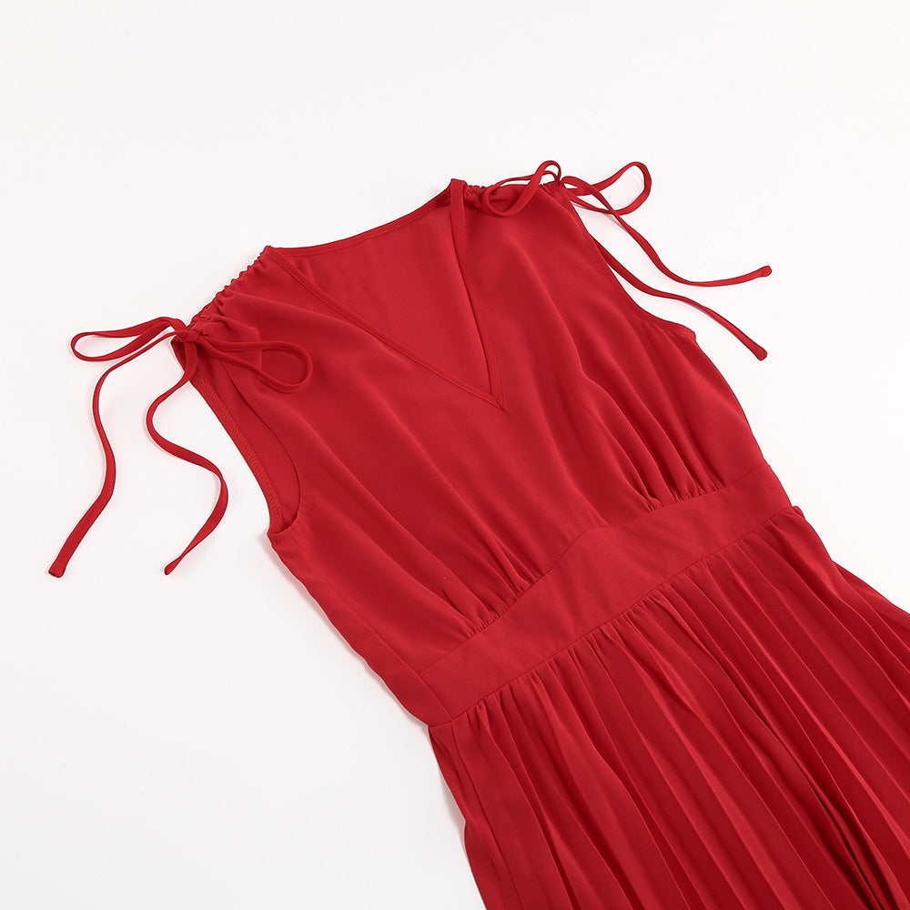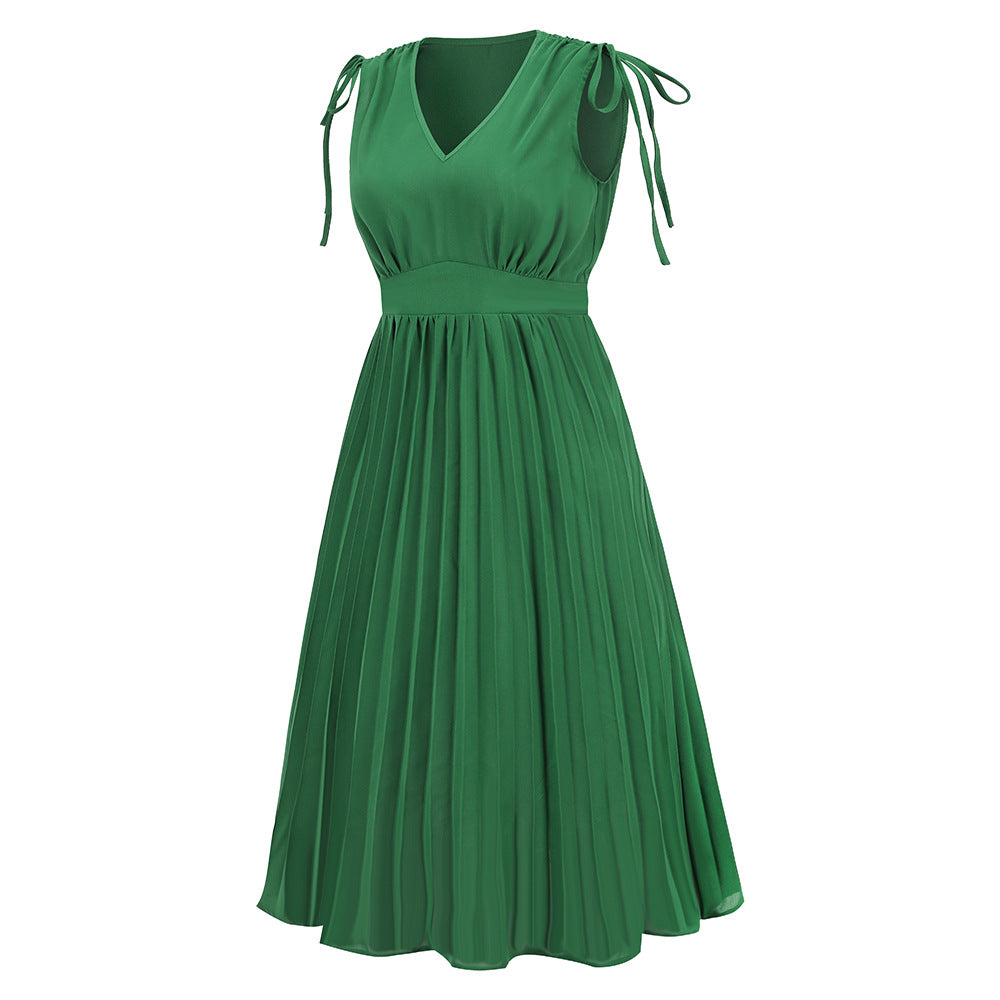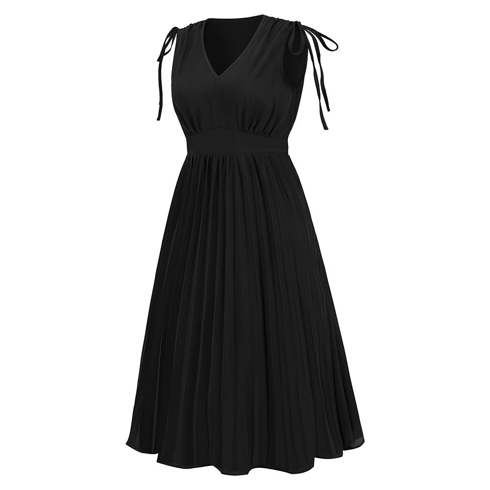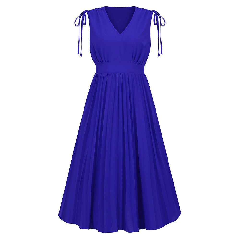 Casual Sleeveless V-Neck Flared Solid Midi Dress