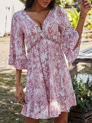 Casual V-Neck 3\4 Sleeve Printed Mini Dress
