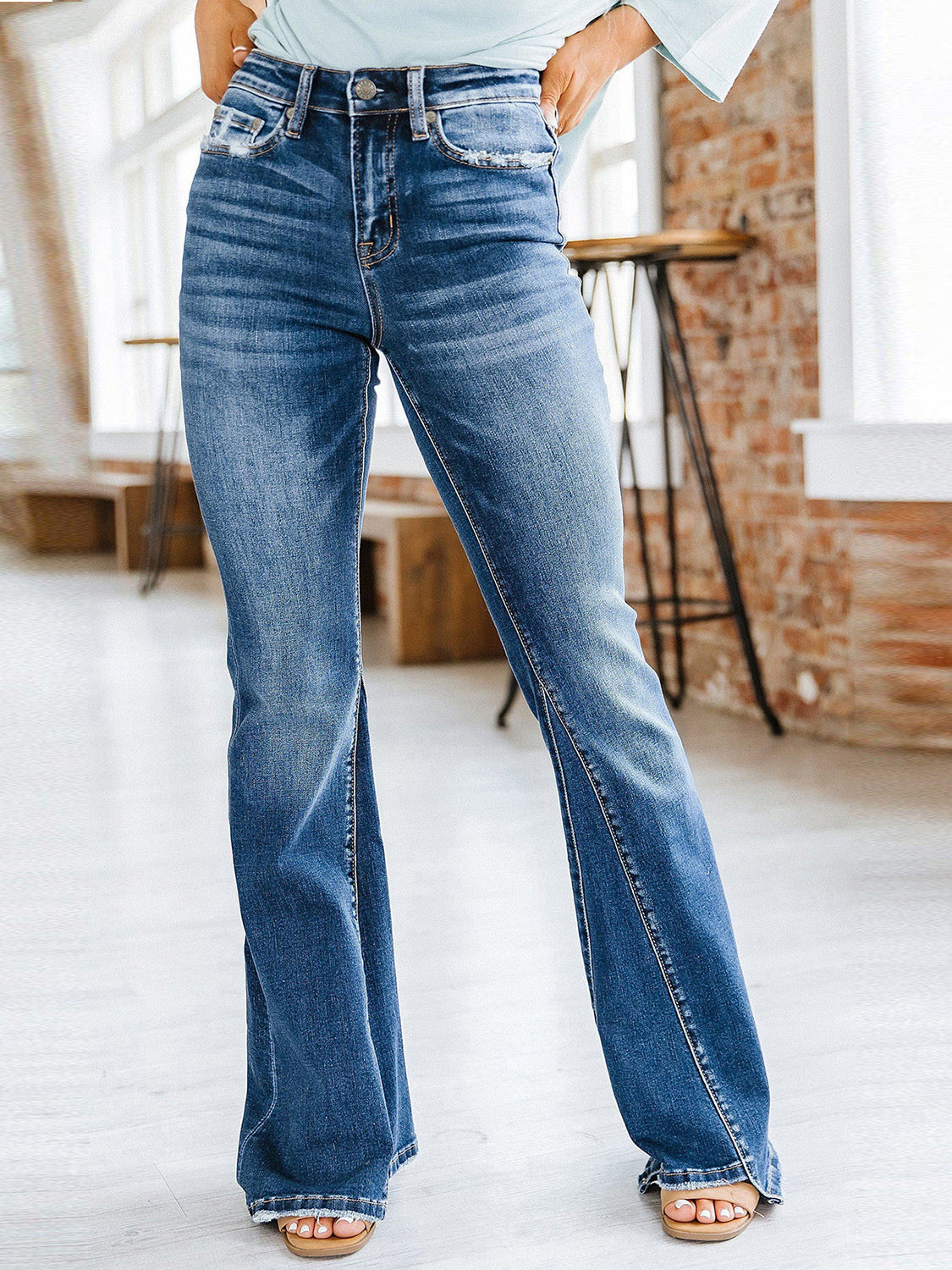 Casual Wide Leg High Waisted Pocketed Jeans Pants