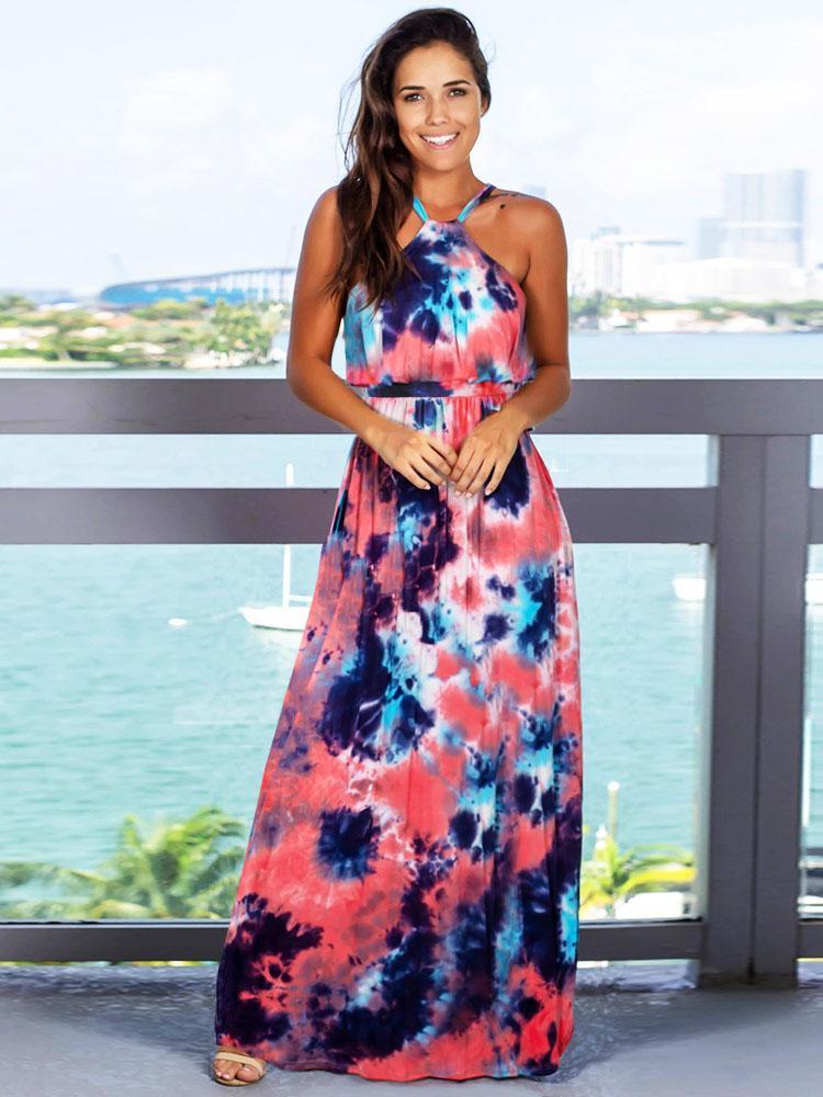 Deep V-neck Sleeveless Strap Maxi Dress