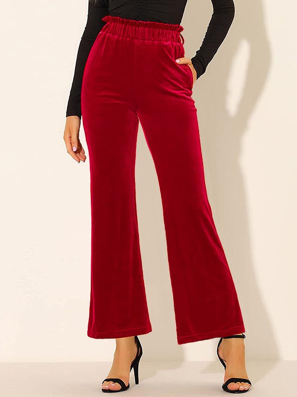 Elastic Waist Solid Color Side Pocket Wide Leg Pants