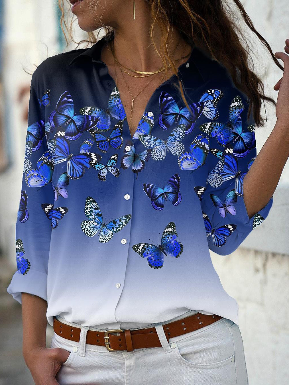 Fashion Long Sleeve Button Down Floral Blouse Top