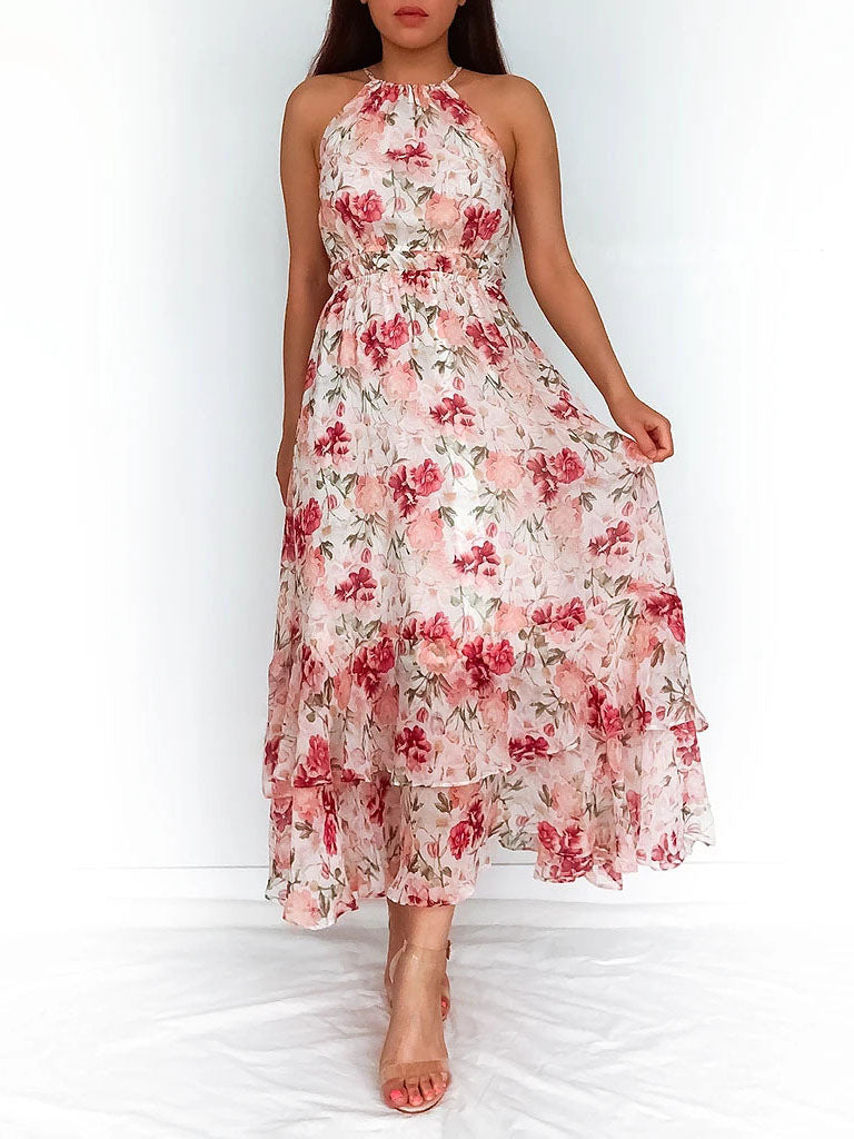 • Features: Sleeveless. o-neck. floral printed. casual maxi dress