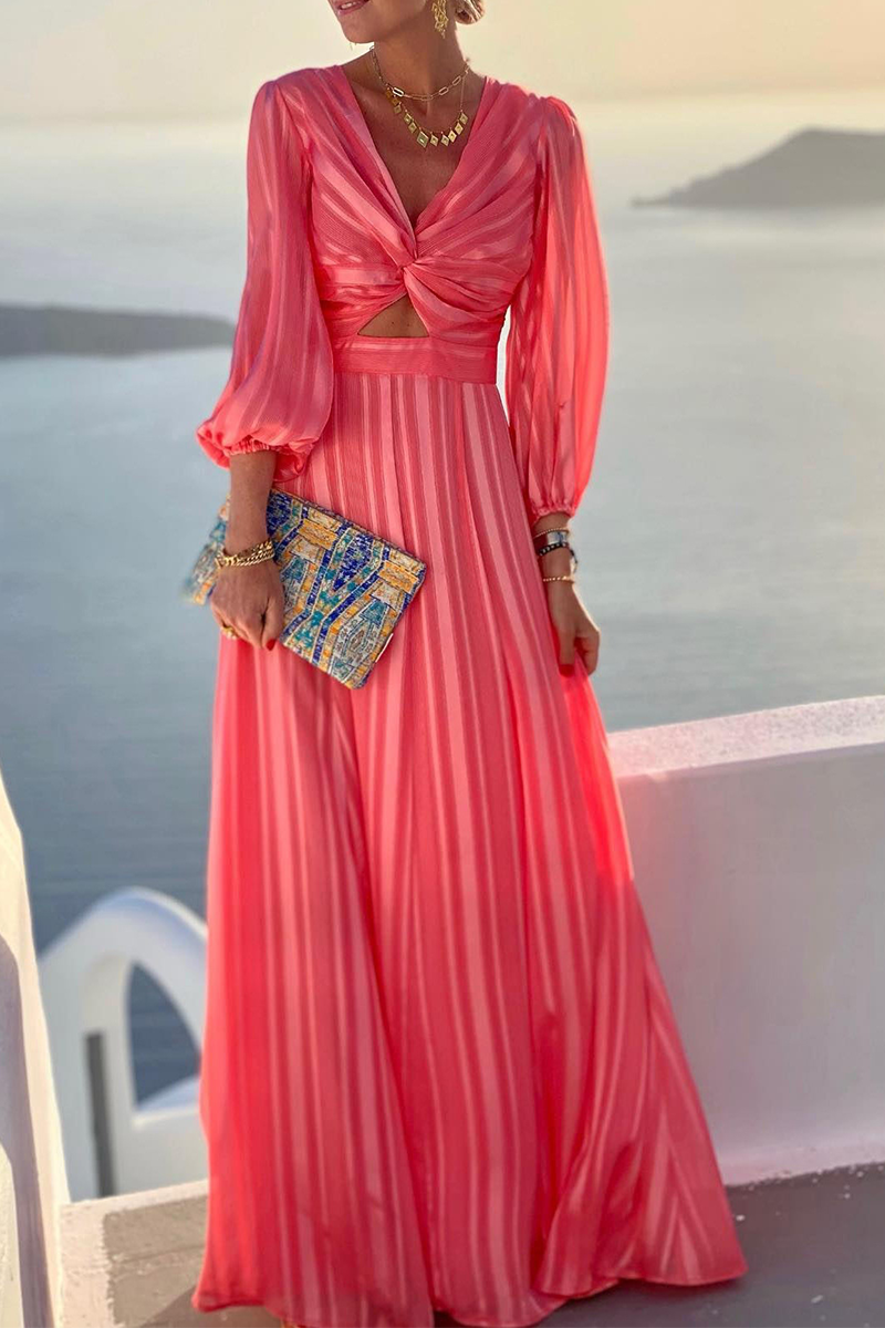 Fashion Solid Hollowed Out V Neck Cake Skirt Dresses