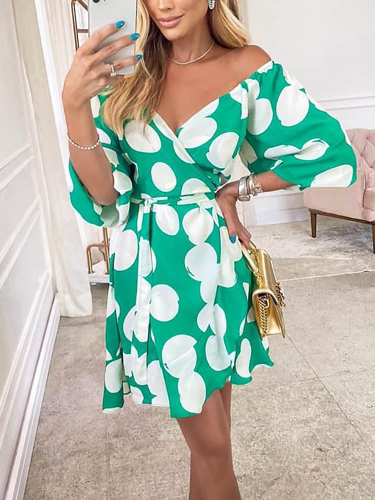 Floral Off Shoulder Short Sleeve Mini Dress