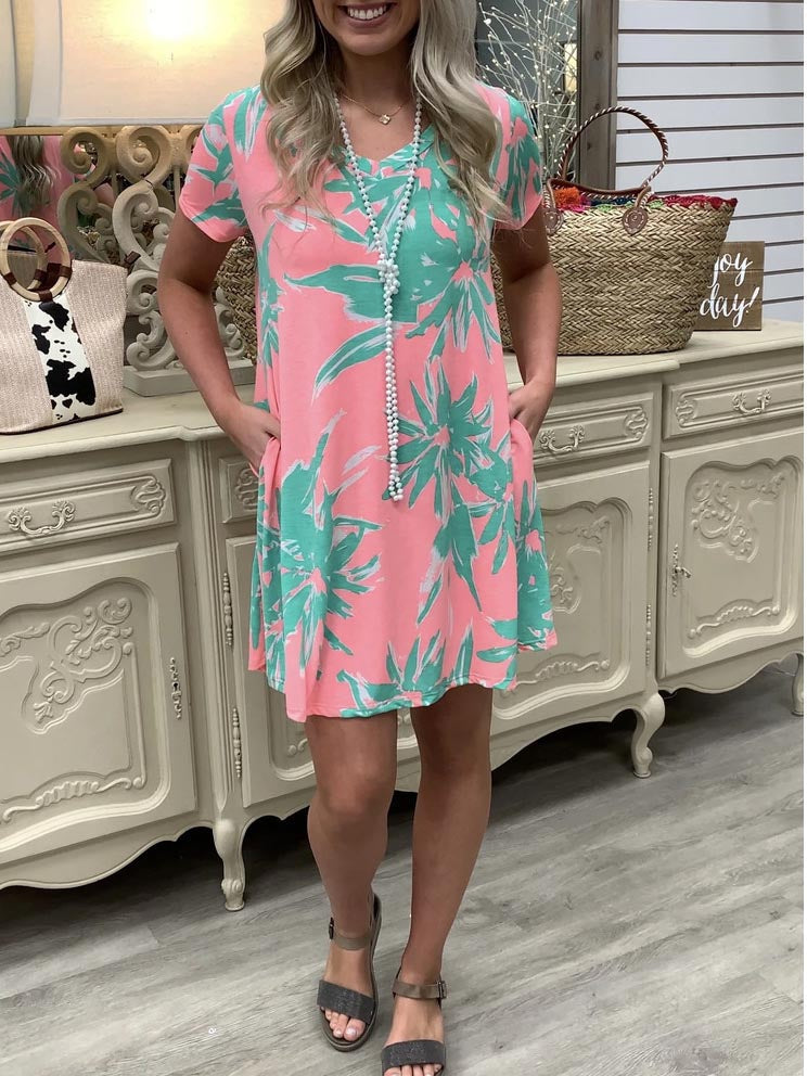 Floral Round Neck Casual Short Sleeve Mini Dress