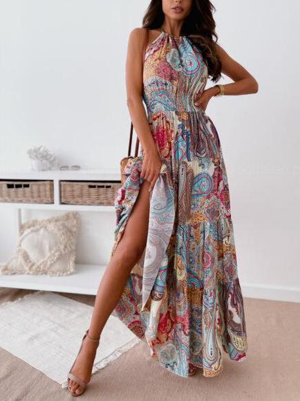 Halter Neck Sleeveless Elastic Waist Maxi Dress