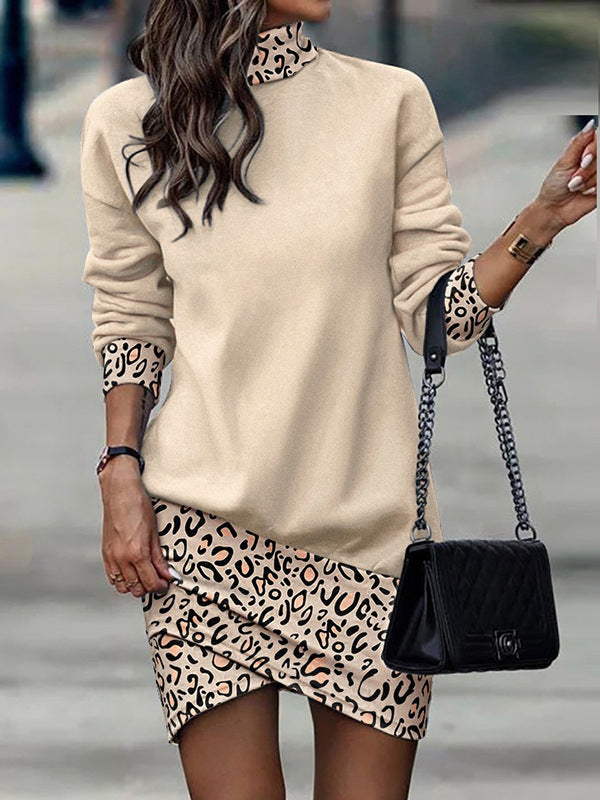 • Features: Long sleeve. print. high neck. cross split. elegant mini dress