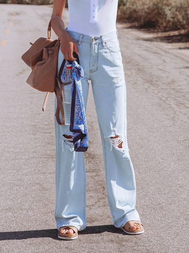 High Waist Long Jeans Loose Denim Pants with Pockets