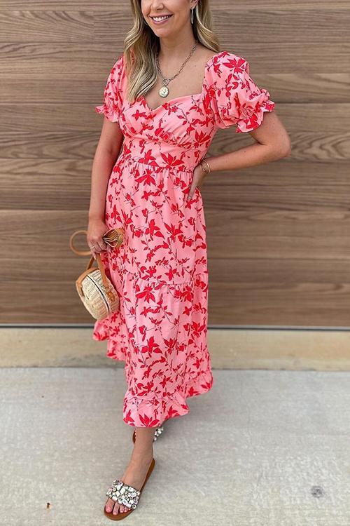 Print placement may vary. Rayon. Rise to unending femininity and fierceness this season because we're dressing like milkmaids in our Everything I Dreamed Of Midi Dress! Made for our girliest babes. your new edit features feminine trends from a lace-edged Queen Anne neckline. puff sleeves. a flattering empire waist to a bold saturated floral print throughout. We're wearing ours with strappy white block heels and statement earrings for a rooftop party vibe.