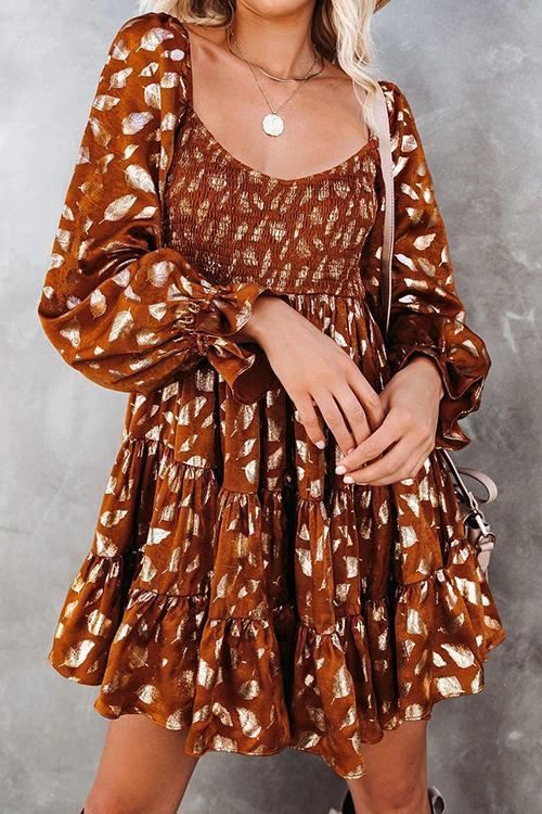 Hot Stamping Ruffles Elastic Puff Sleeve Mini Dress