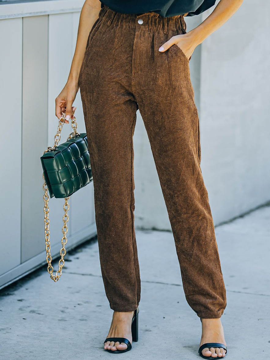 • Feature: Zipper closure. button. elastic waist long curdoroy pants