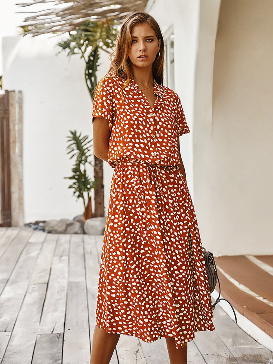 Features: V Neck. Leopard Floral .Short sleeves. Button down . loose fit.