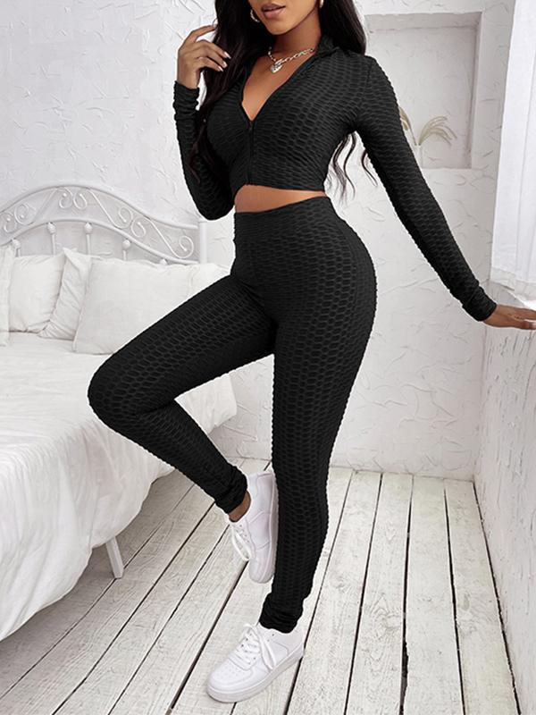 Long Sleeve V Neck Zip Up Top with Pants Set