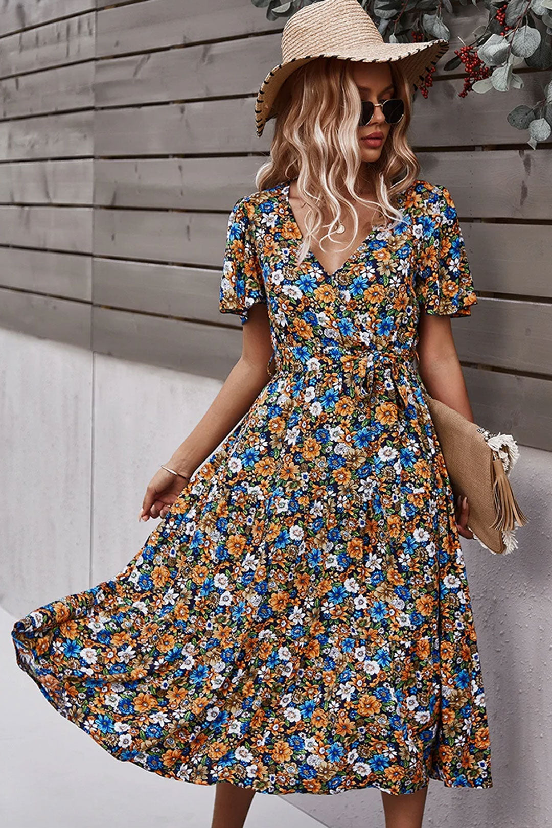 Boho Midi Dress, Sundress, Be a Wildflower in Navy Blue