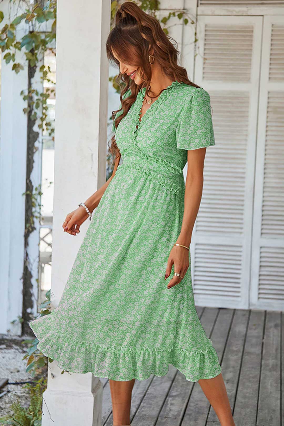 Boho Midi Dress, Sundress Romy in Green