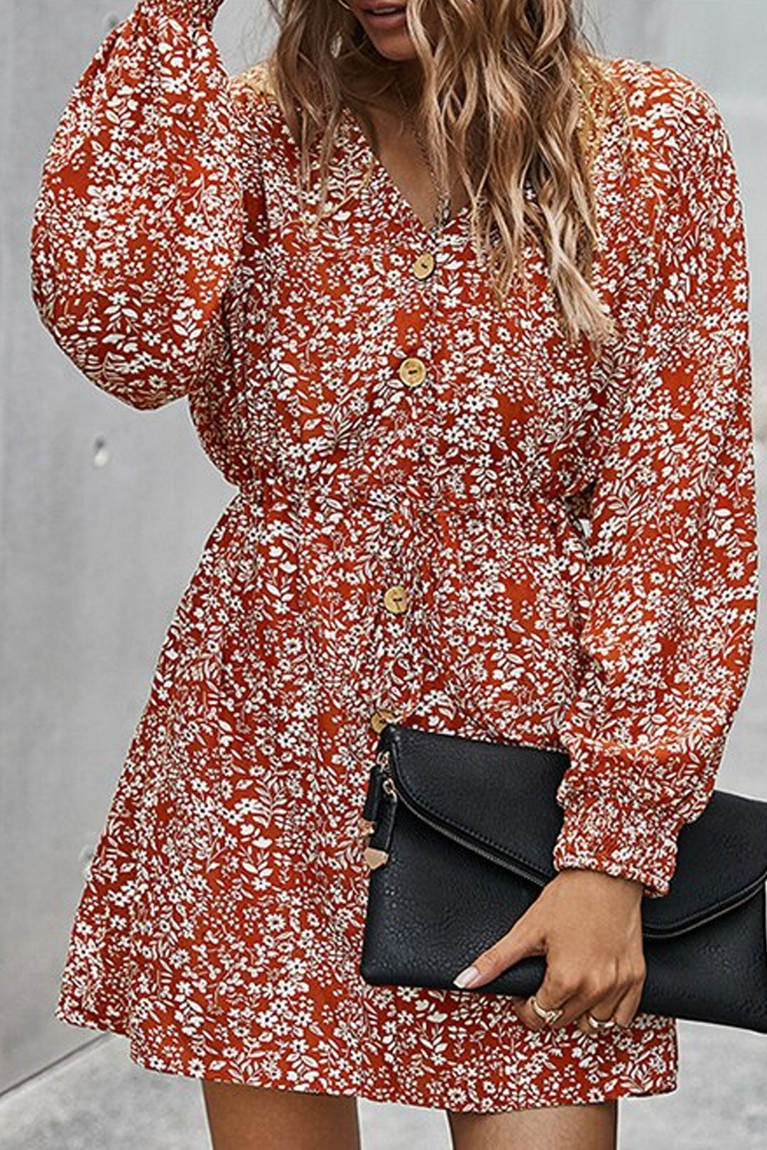 Boho Mini Dress Vintage Dress, Small Daisy Red and Green