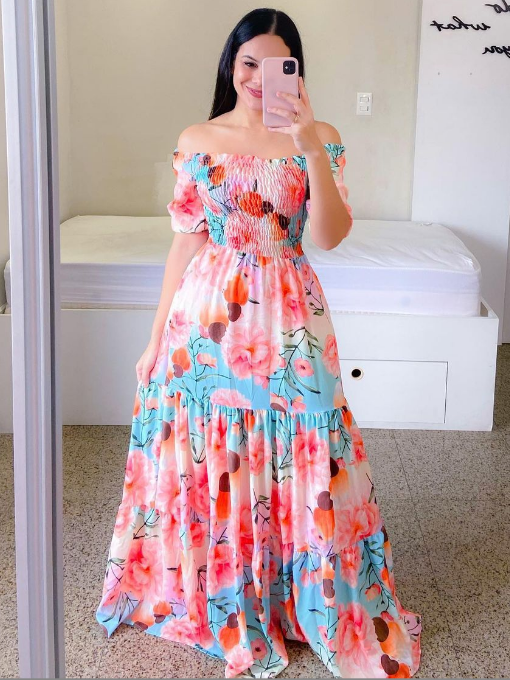 Offshoulder Short Sleeve High Waist Maxi Dress
