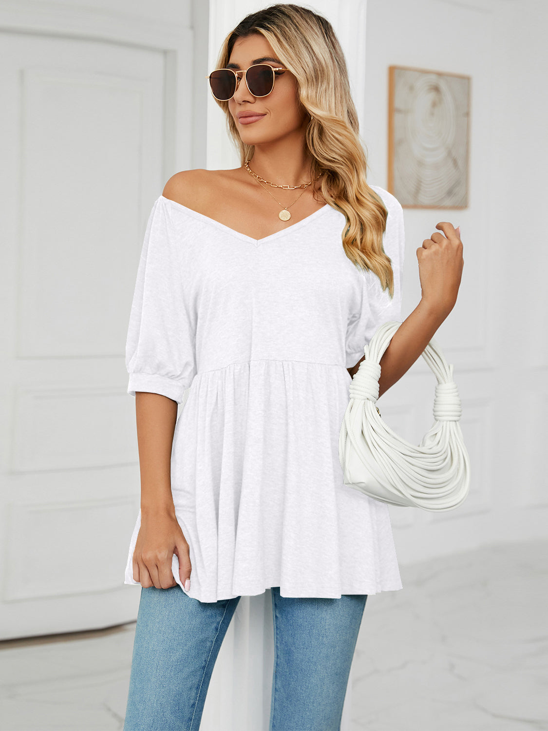 Offshoulder Short Sleeve Solid Color Blouse Top