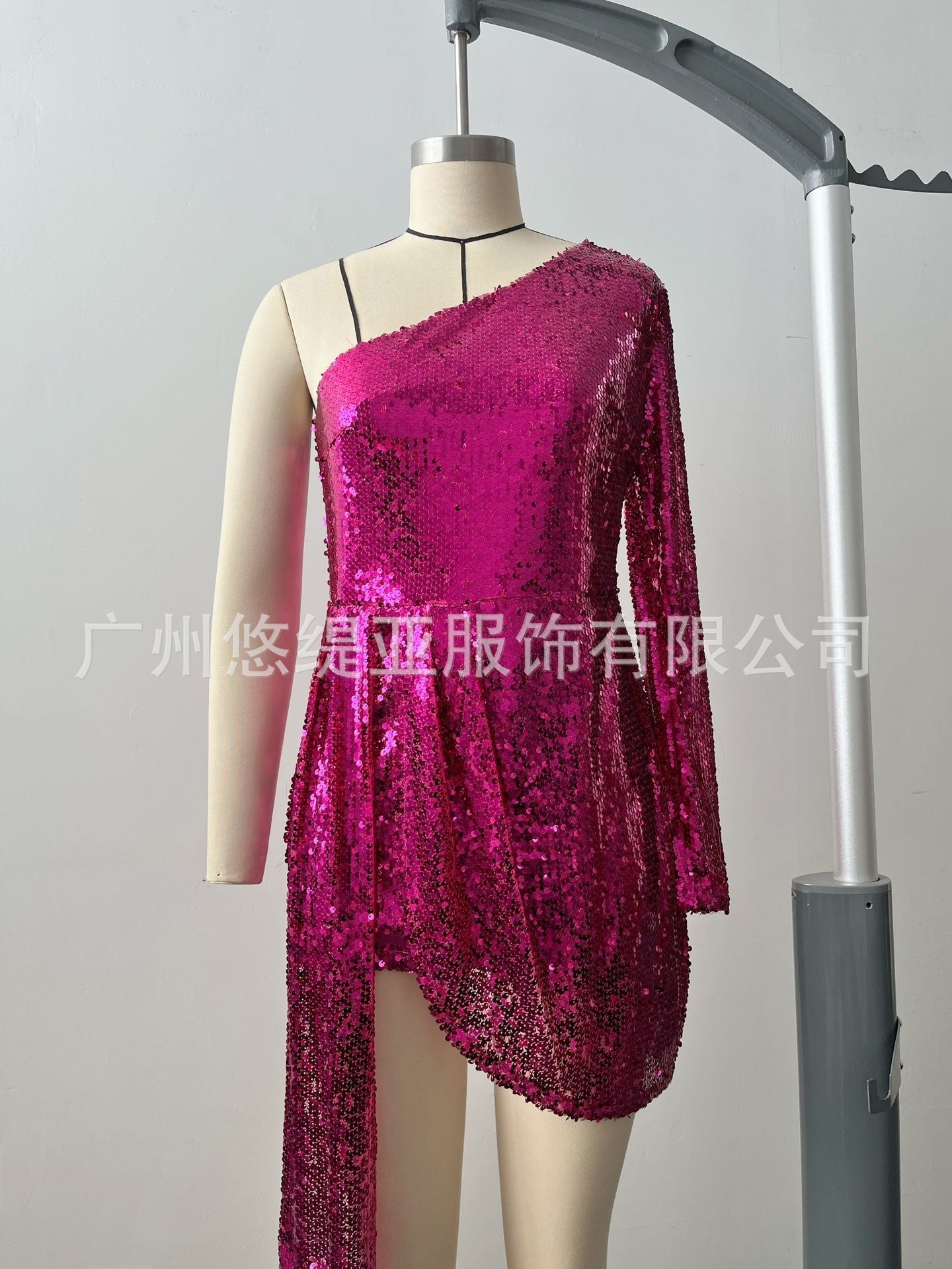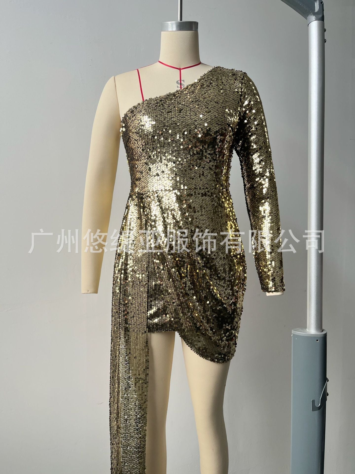 Material: Made of high quality and classic fabric Feature: Long sleeve. one shoulder. sparkling. high waist mini dress Occasion: Great for. dating. ball. party. birthday and other special occasions