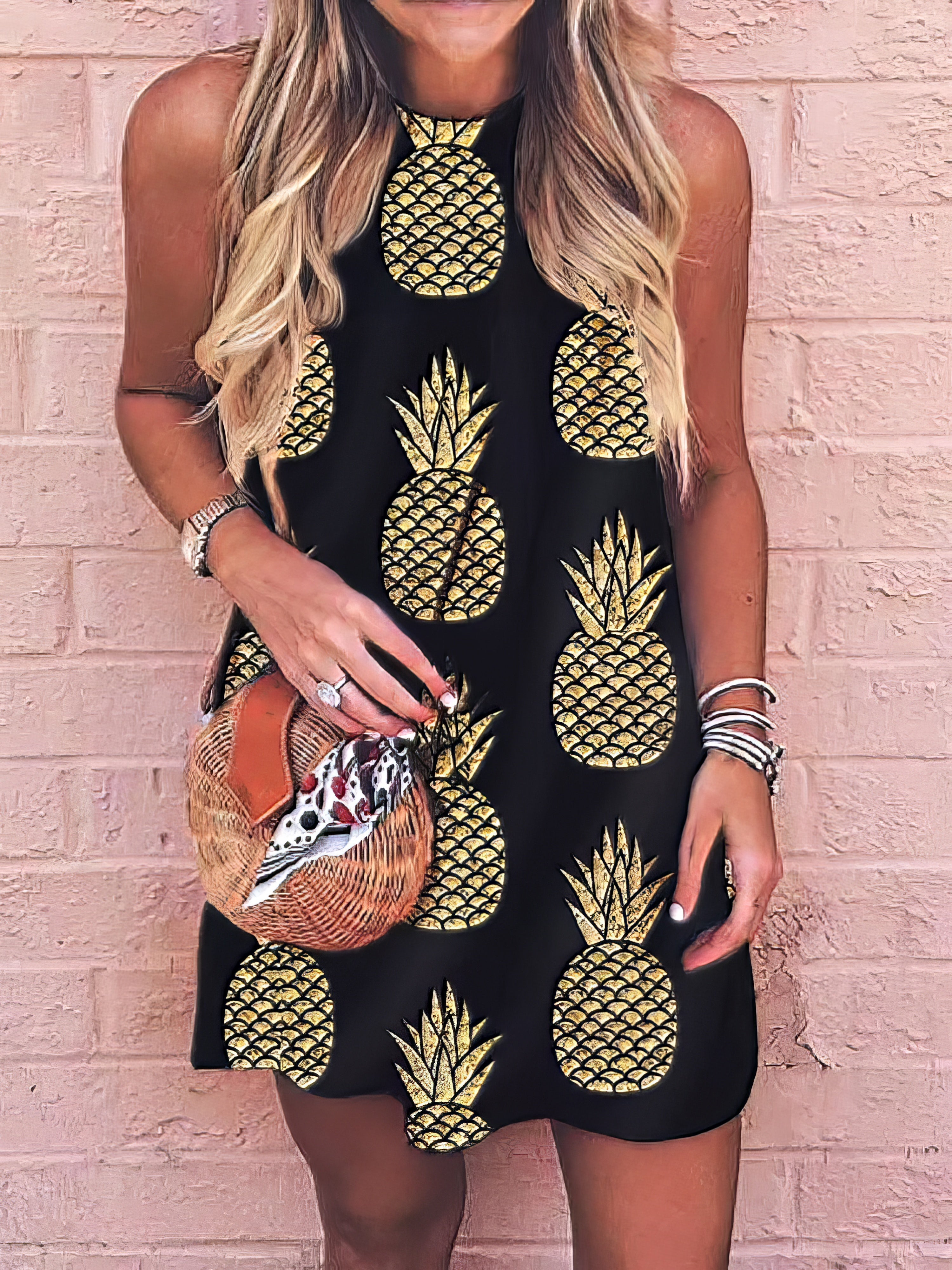 Feature: Round Neck. Pineapple Print. Sleeveless